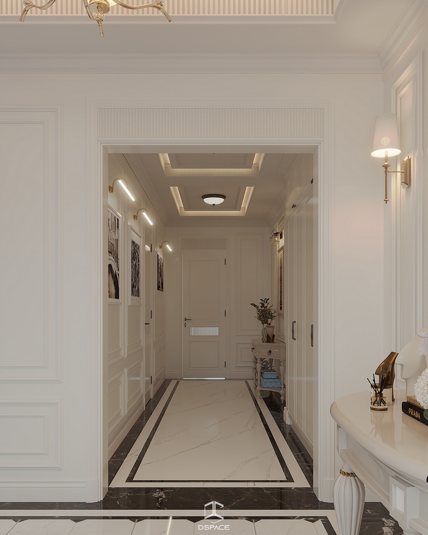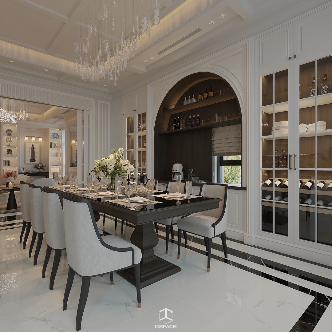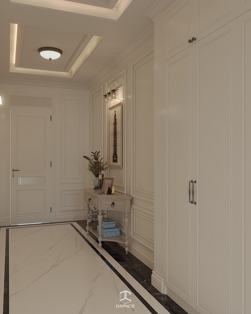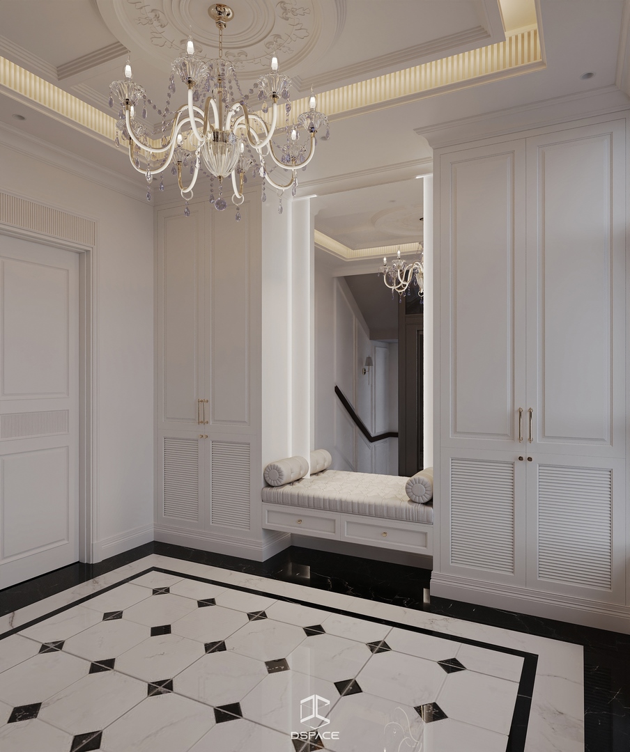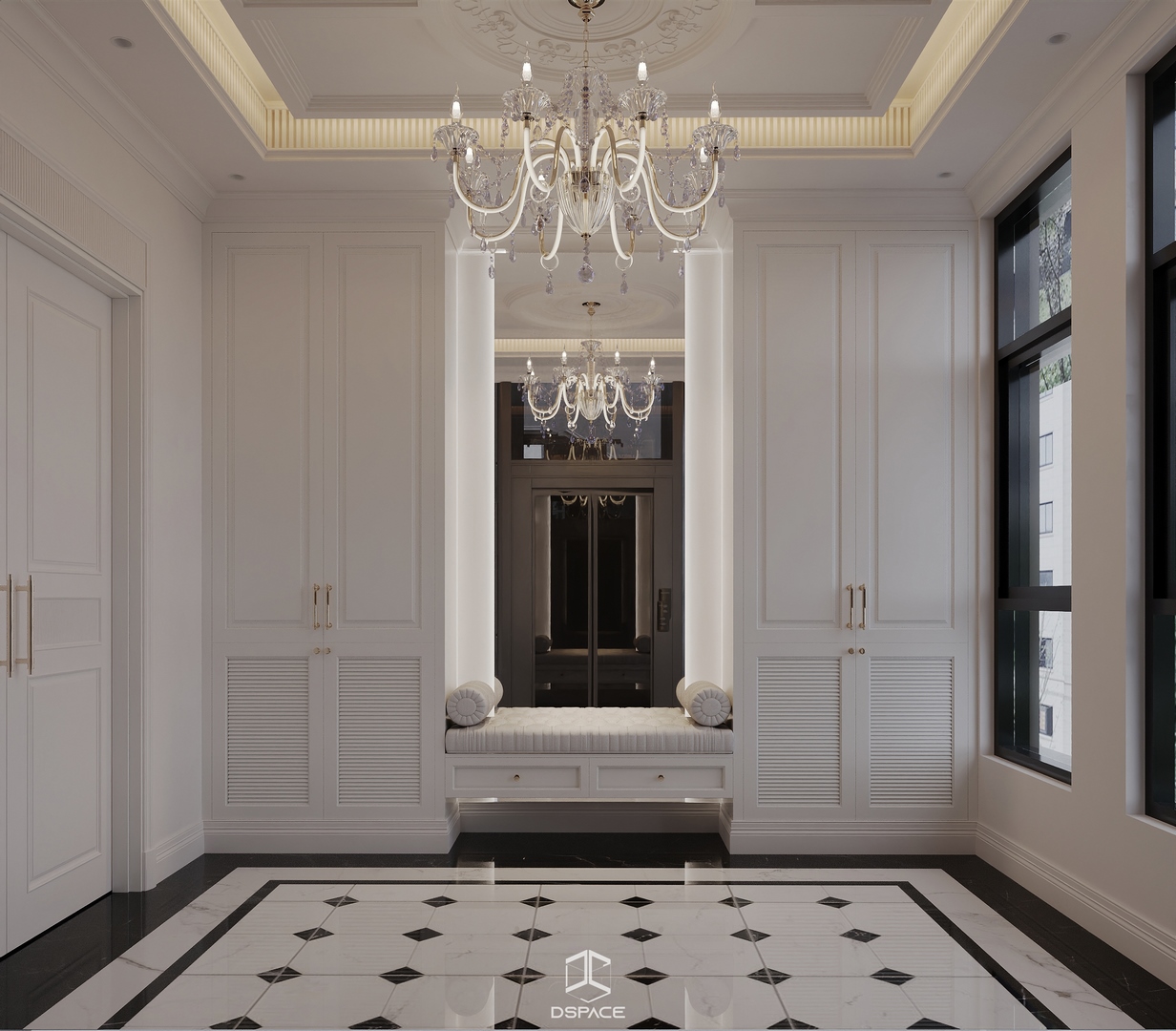 Tại khu đô thị Louis Hoàng Mai, Nội thất Dspace tiếp tục thiết kế thi công trọn gói căn biệt thự liền kề 5 tầng, diện tích 450m²/5 tầng, mang tinh thần Neo Classic chỉn chu và giàu chi tiết.
