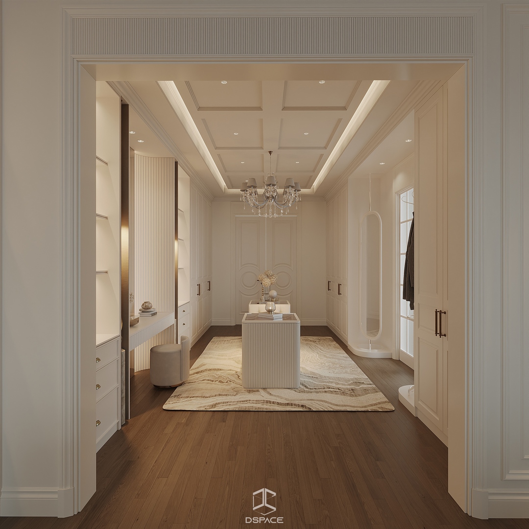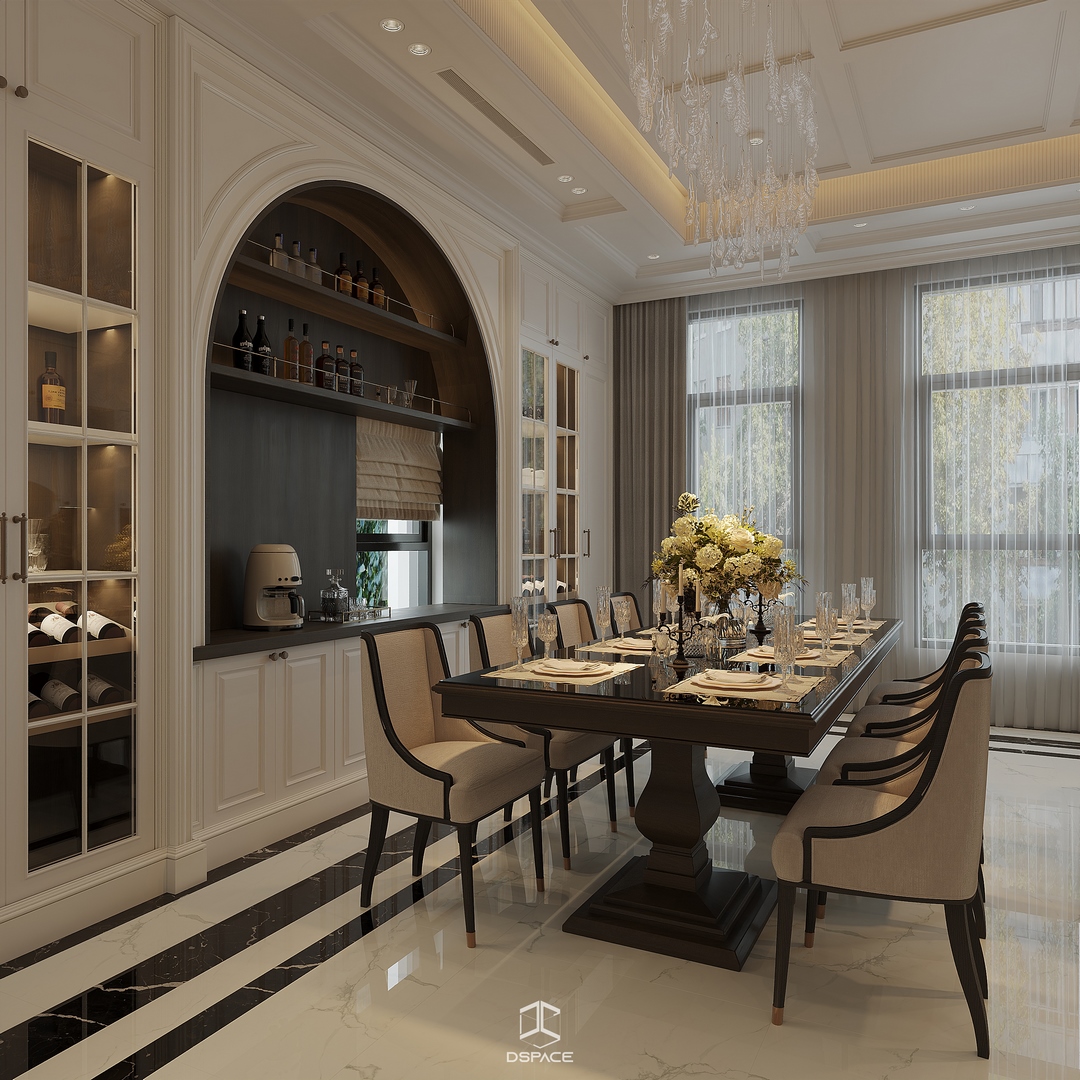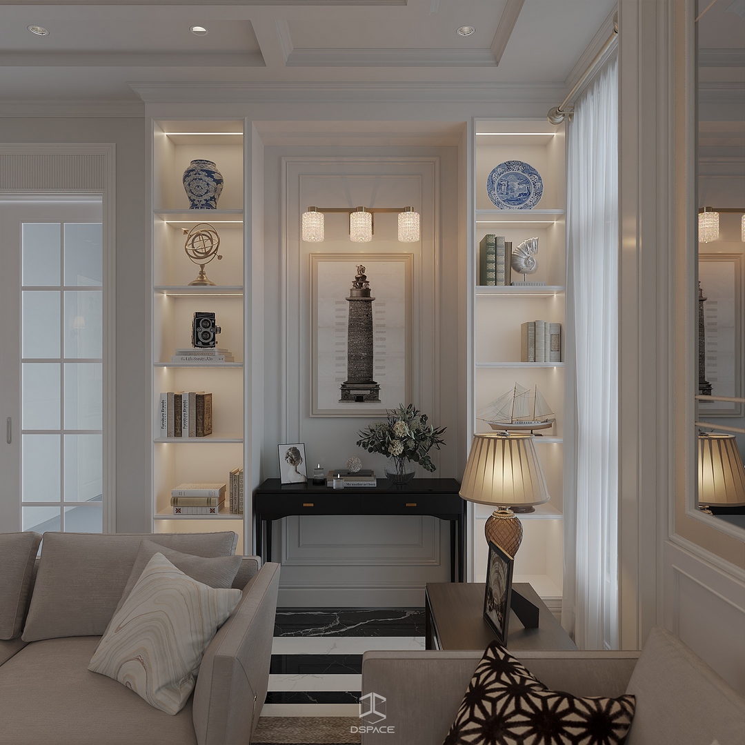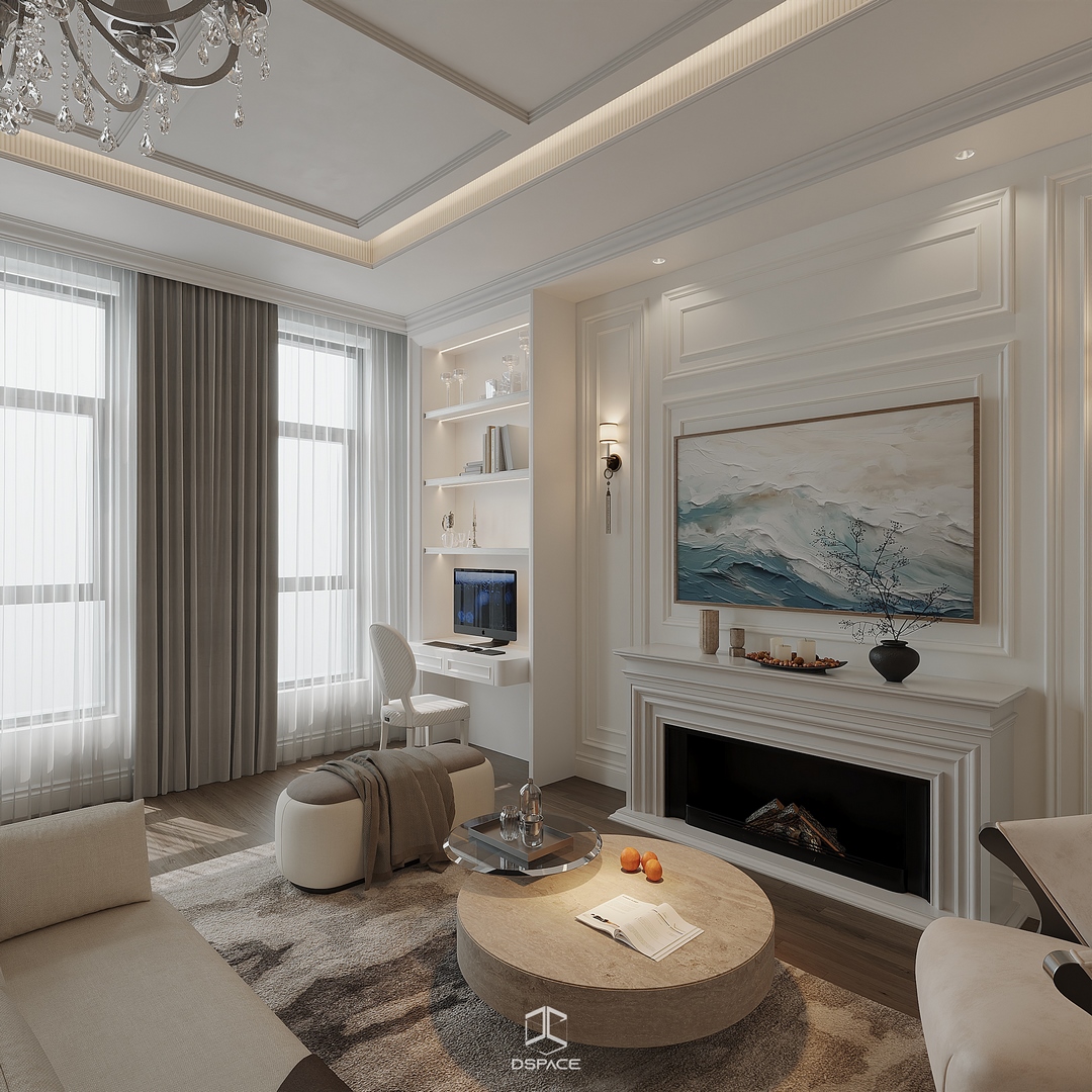 Tại khu đô thị Louis Hoàng Mai, Nội thất Dspace tiếp tục thiết kế thi công trọn gói căn biệt thự liền kề 5 tầng, diện tích 450m²/5 tầng, mang tinh thần Neo Classic chỉn chu và giàu chi tiết.
