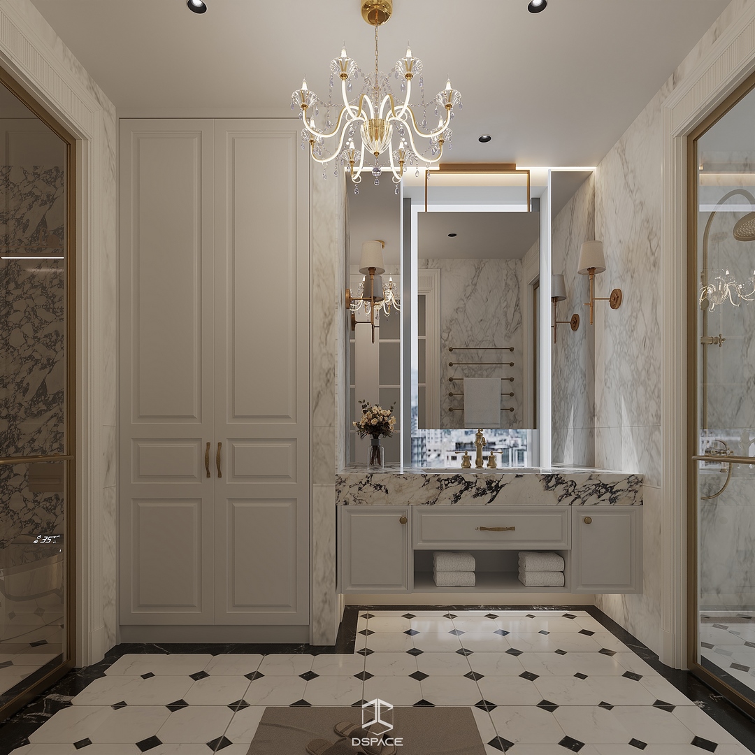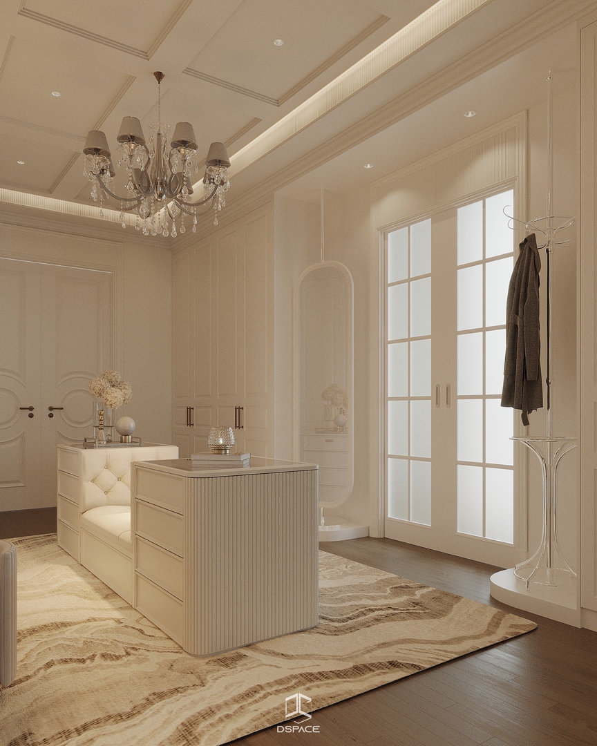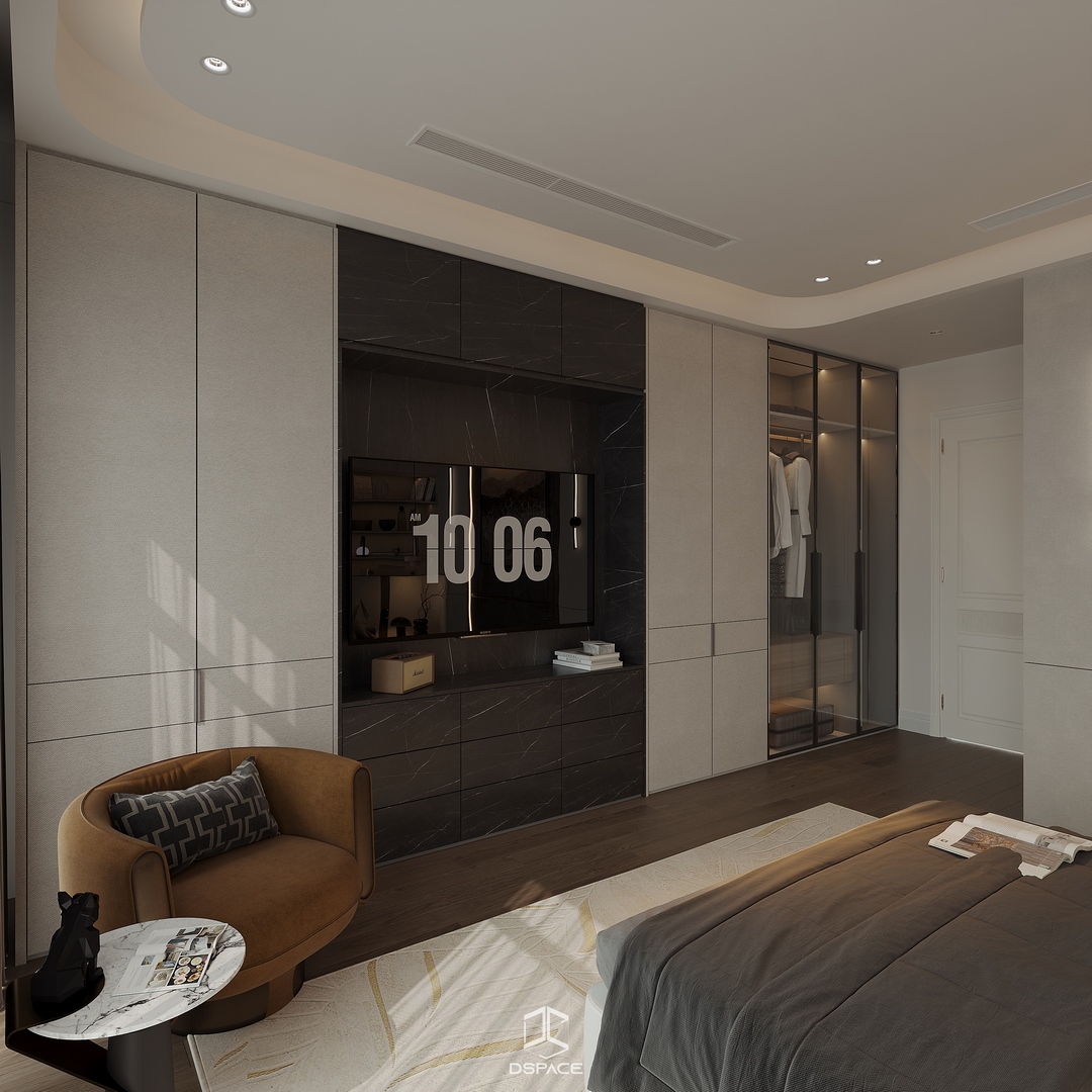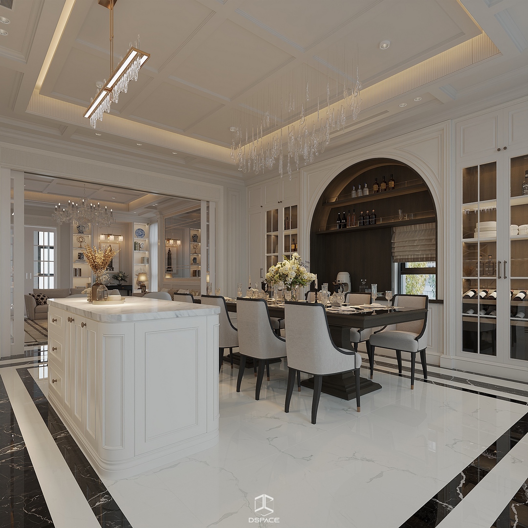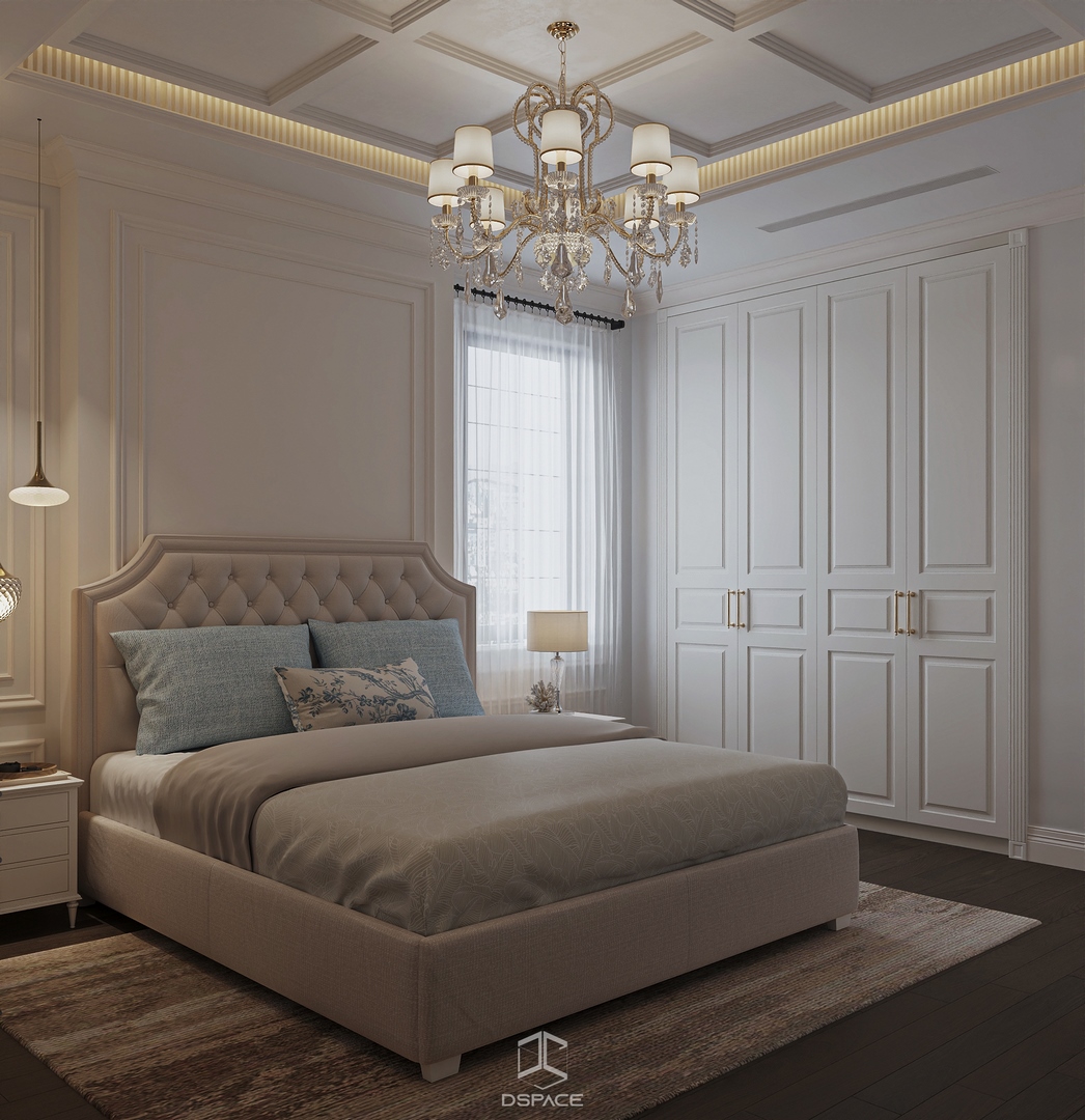 Tại khu đô thị Louis Hoàng Mai, Nội thất Dspace tiếp tục thiết kế thi công trọn gói căn biệt thự liền kề 5 tầng, diện tích 450m²/5 tầng, mang tinh thần Neo Classic chỉn chu và giàu chi tiết.