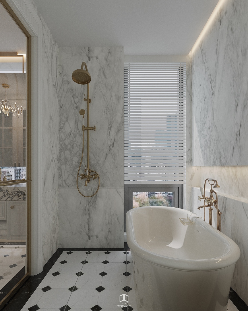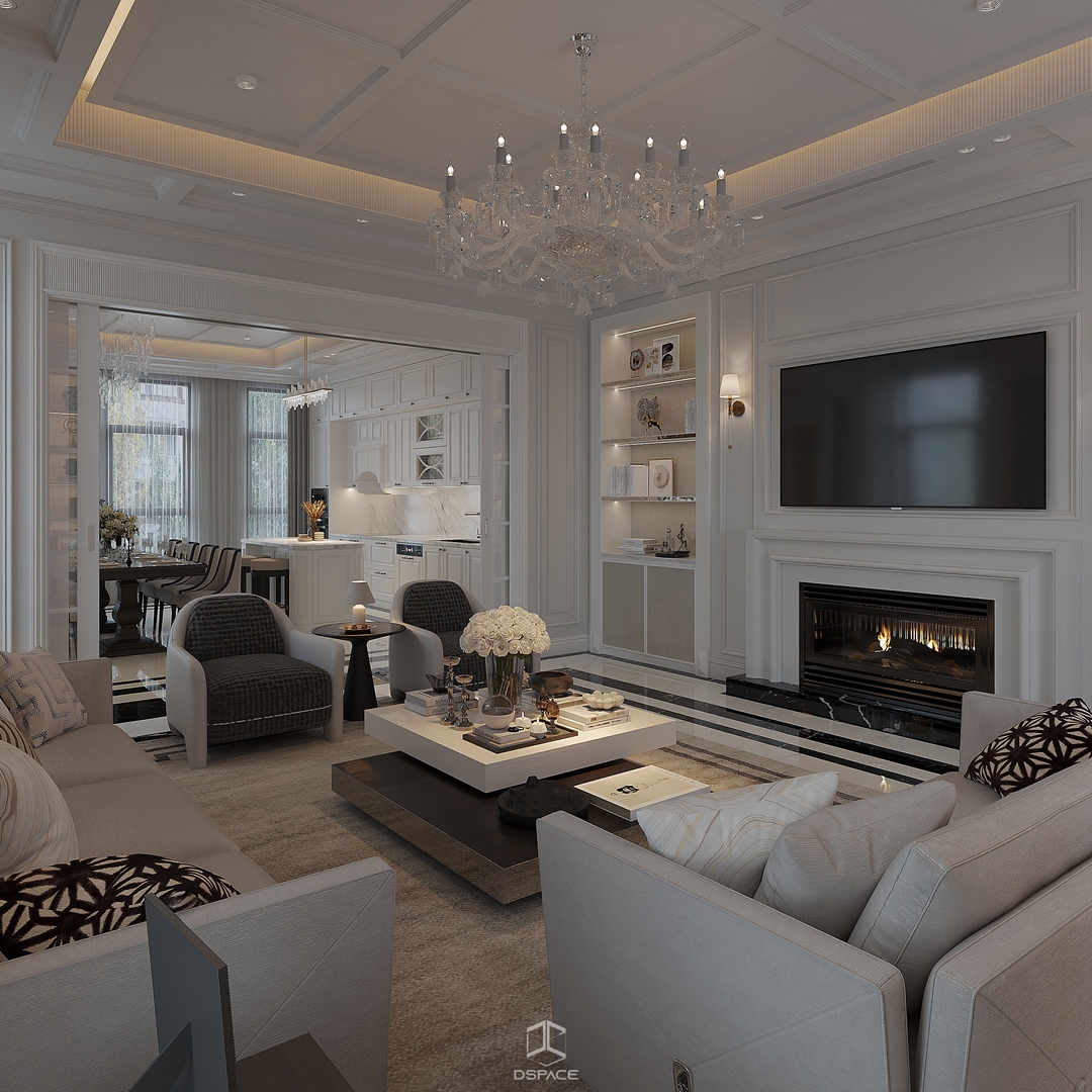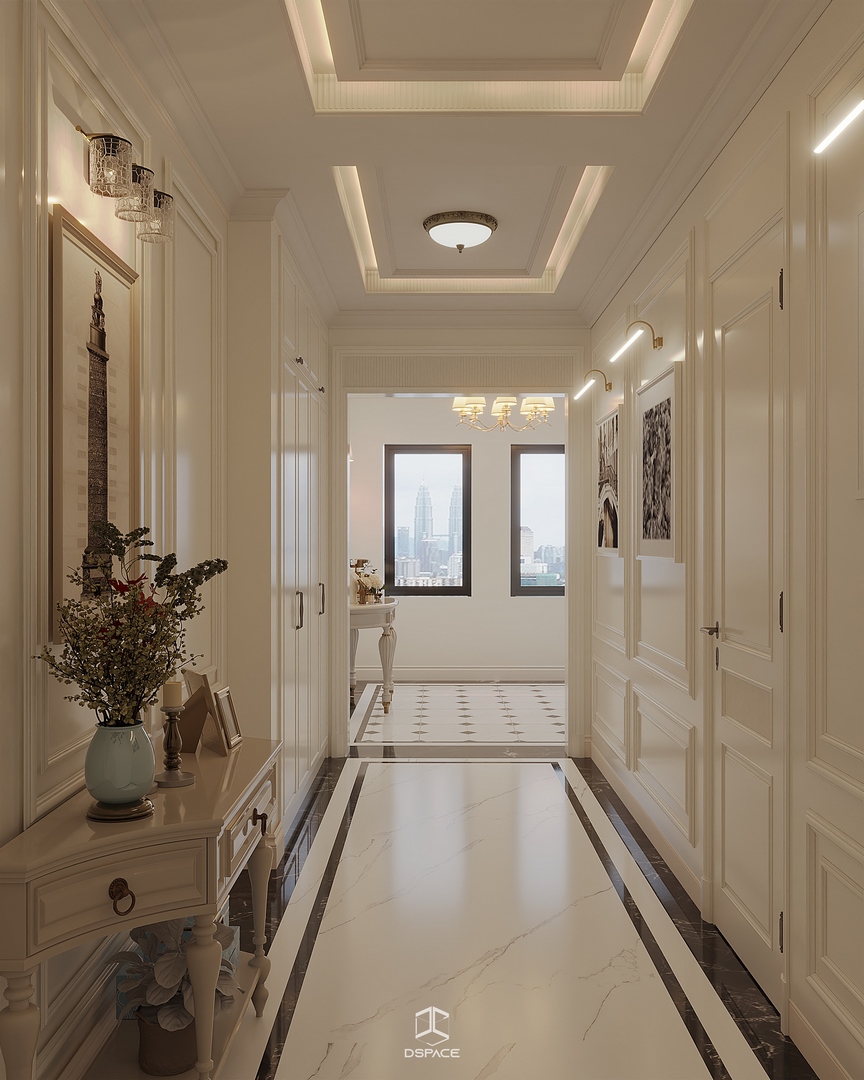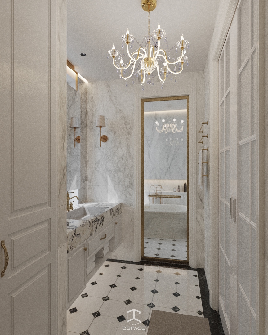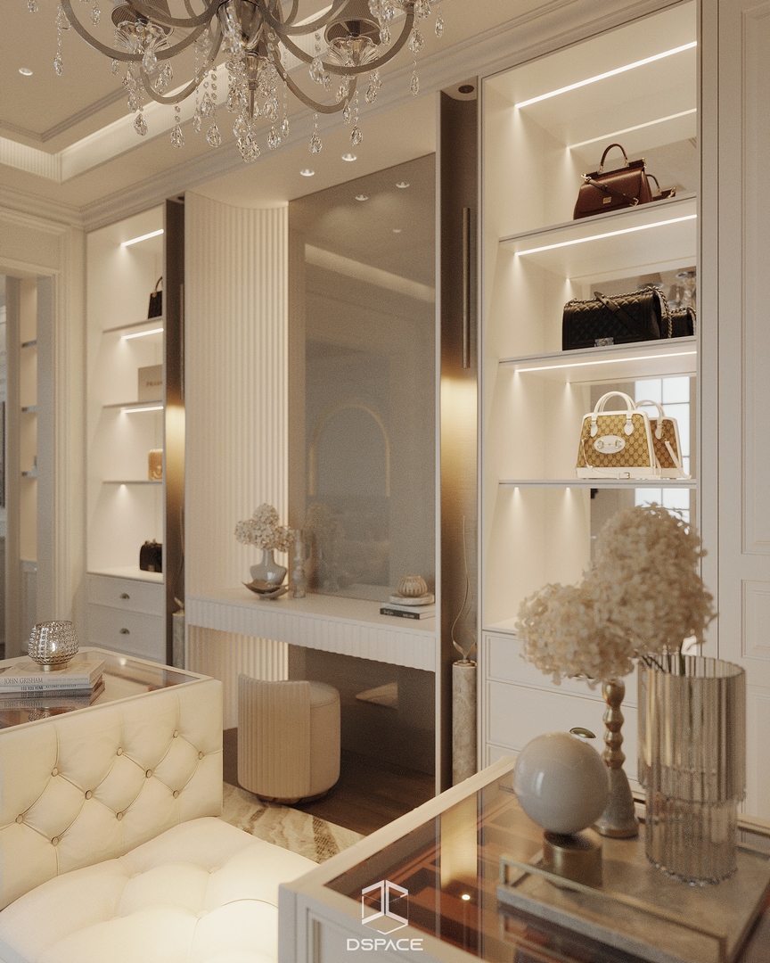 Tại khu đô thị Louis Hoàng Mai, Nội thất Dspace tiếp tục thiết kế thi công trọn gói căn biệt thự liền kề 5 tầng, diện tích 450m²/5 tầng, mang tinh thần Neo Classic chỉn chu và giàu chi tiết.