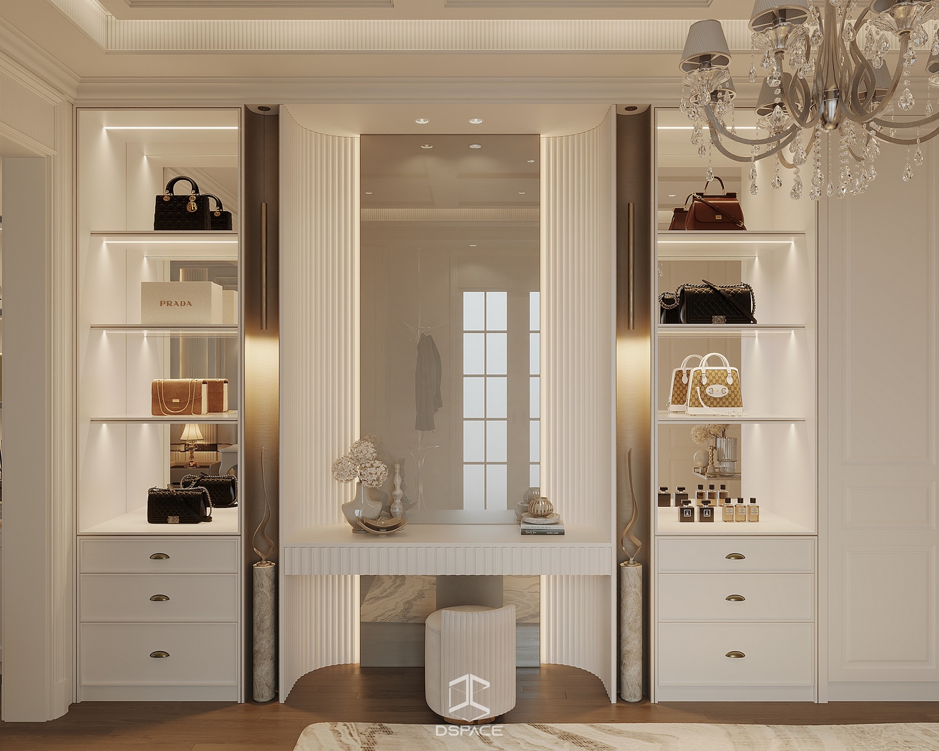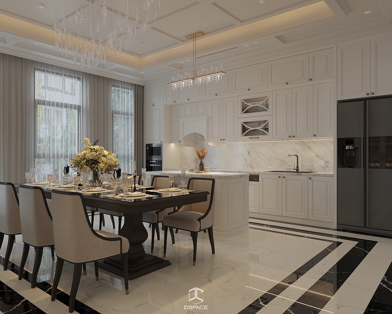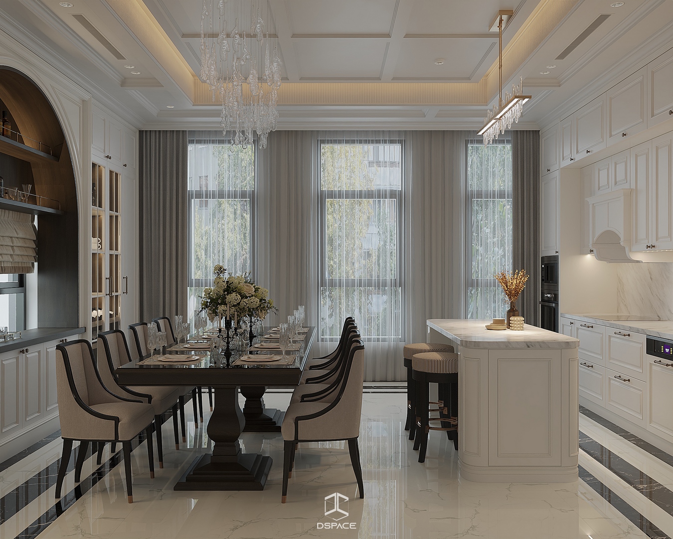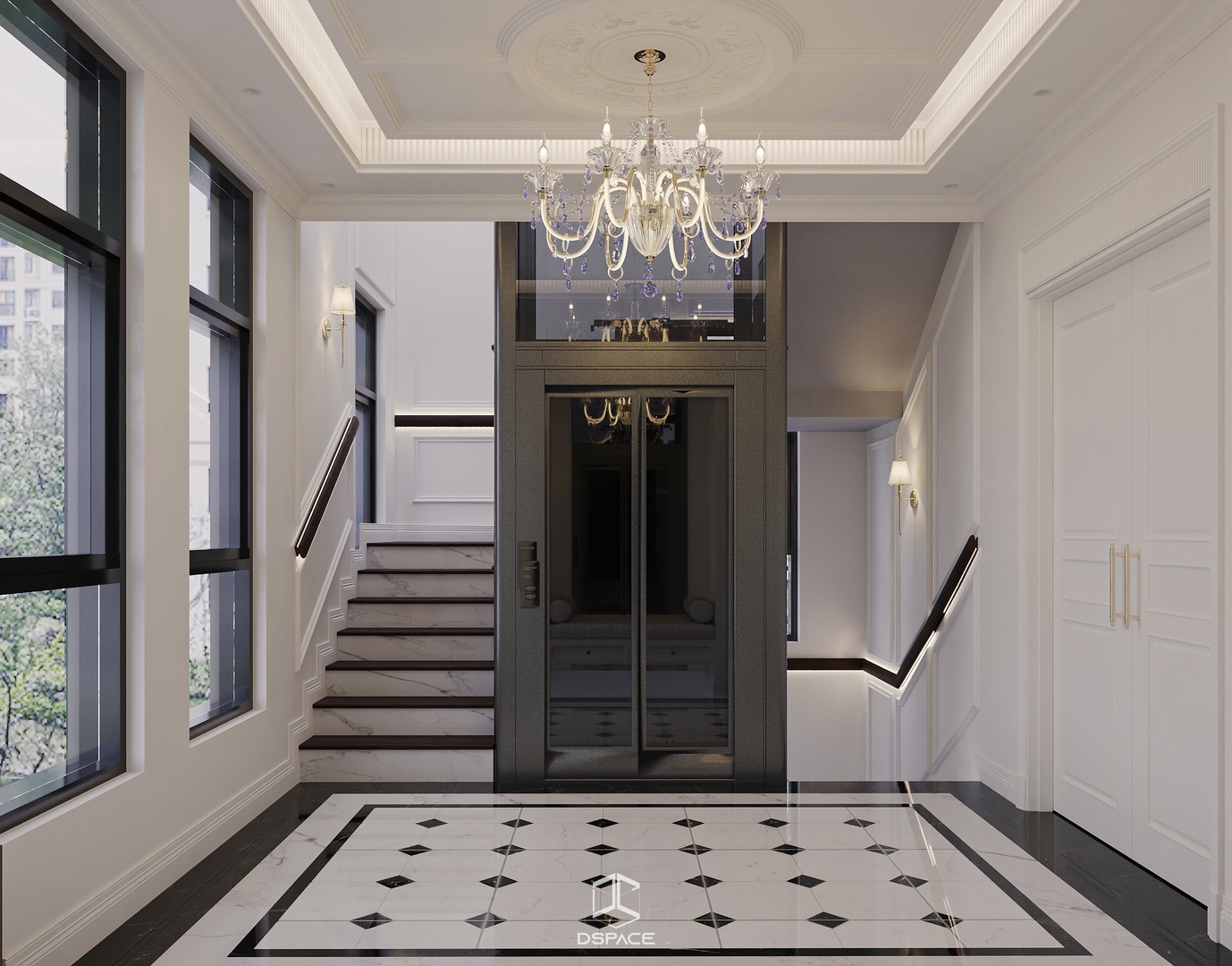Tại khu đô thị Louis Hoàng Mai, Nội thất Dspace tiếp tục thiết kế thi công trọn gói căn biệt thự liền kề 5 tầng, diện tích 450m²/5 tầng, mang tinh thần Neo Classic chỉn chu và giàu chi tiết.