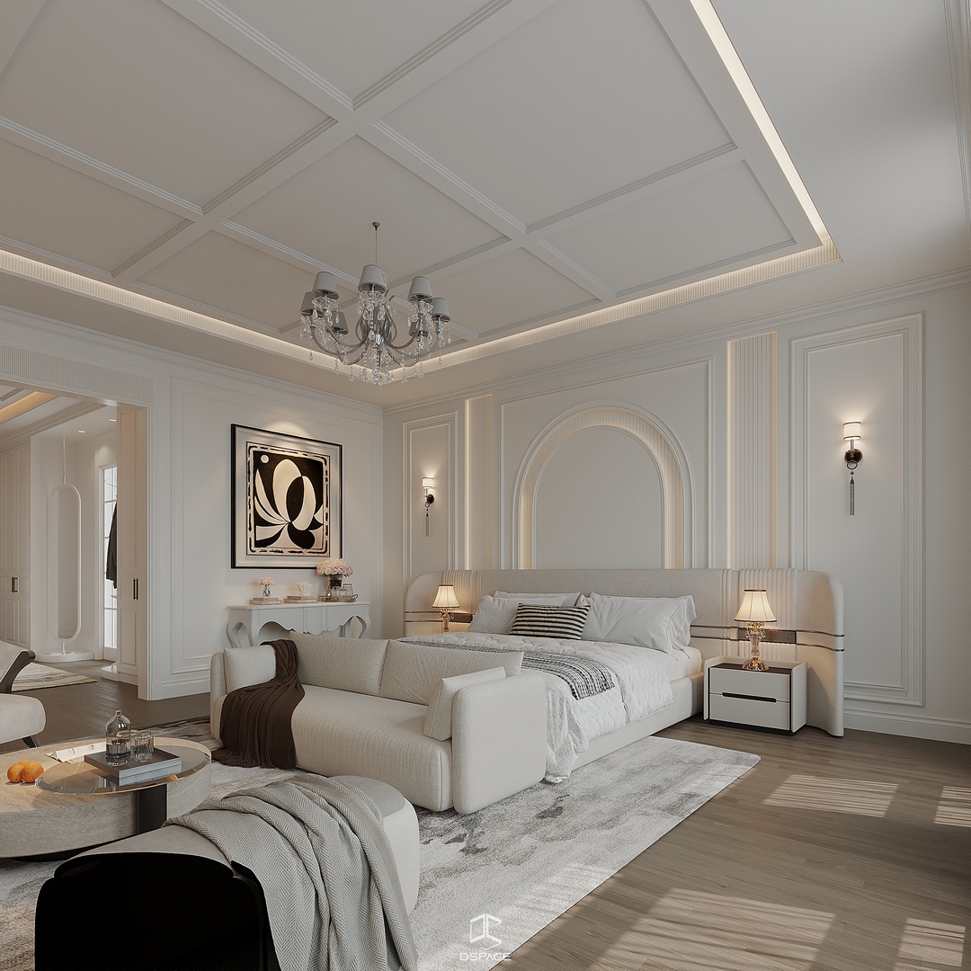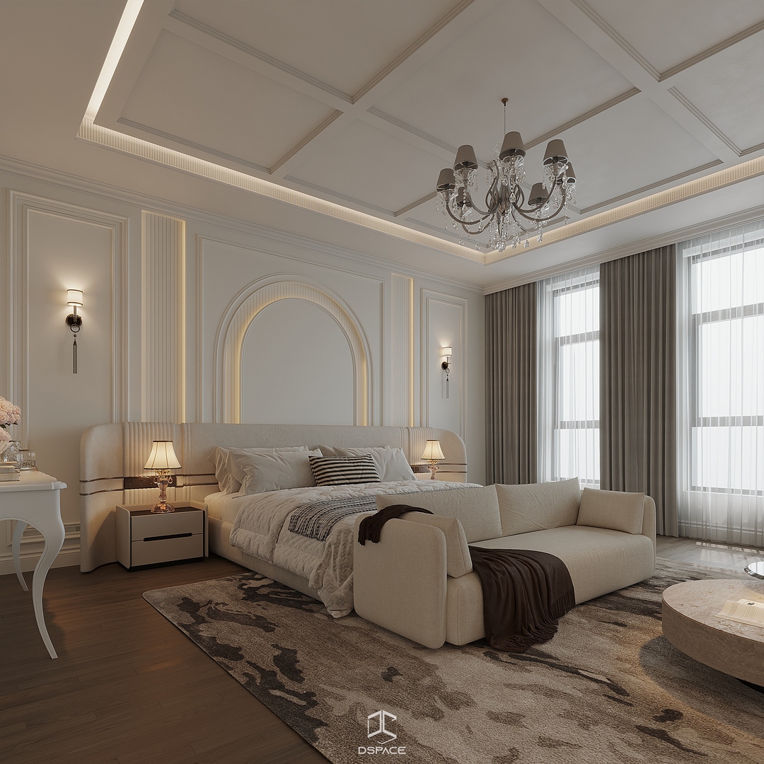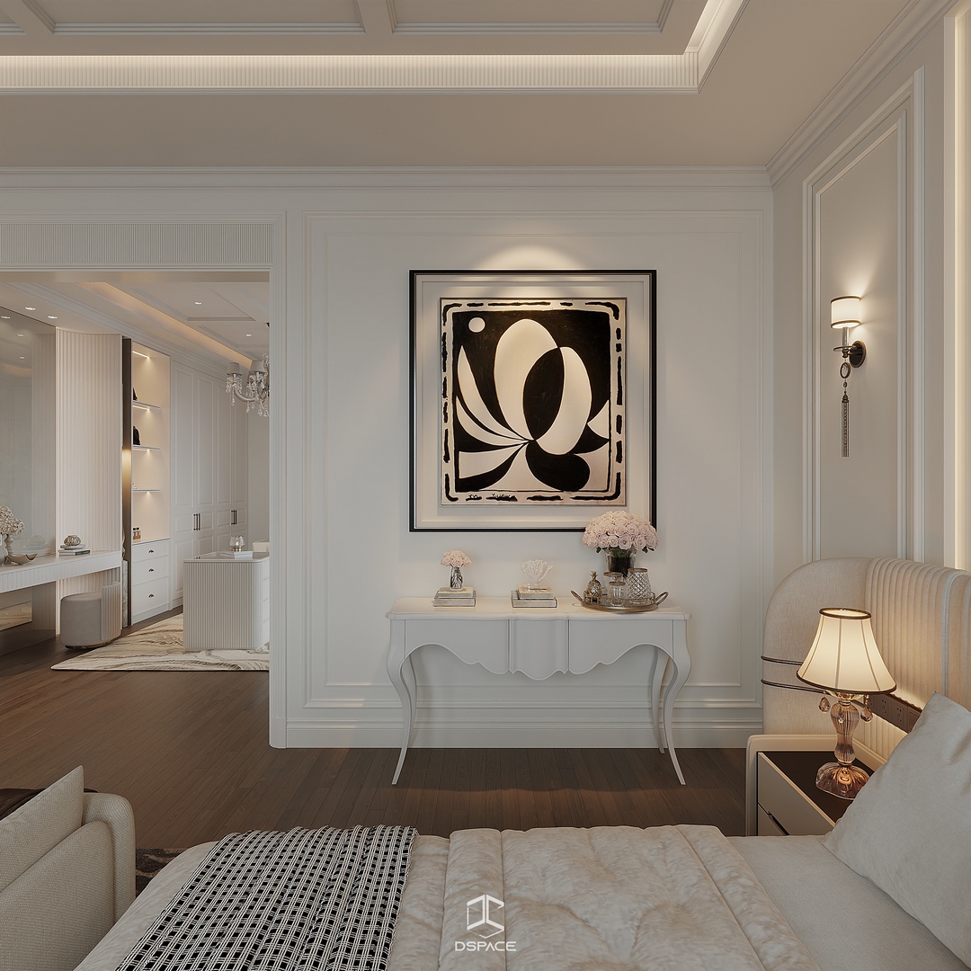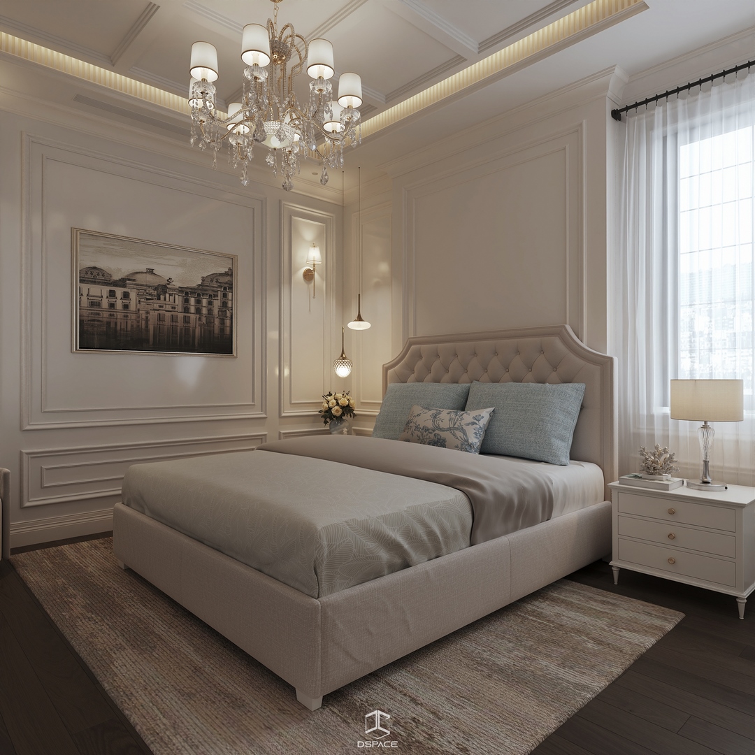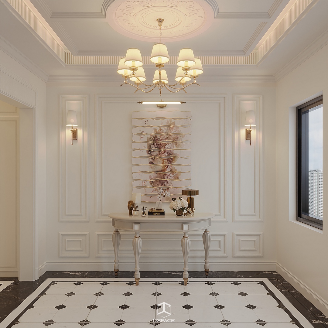 Hệ phào chỉ được xử lý tỉ mỉ, kết hợp cùng bố cục cân đối và ánh sáng tinh tế, tạo nên một tổng thể sang trọng nhưng không nặng nề.
