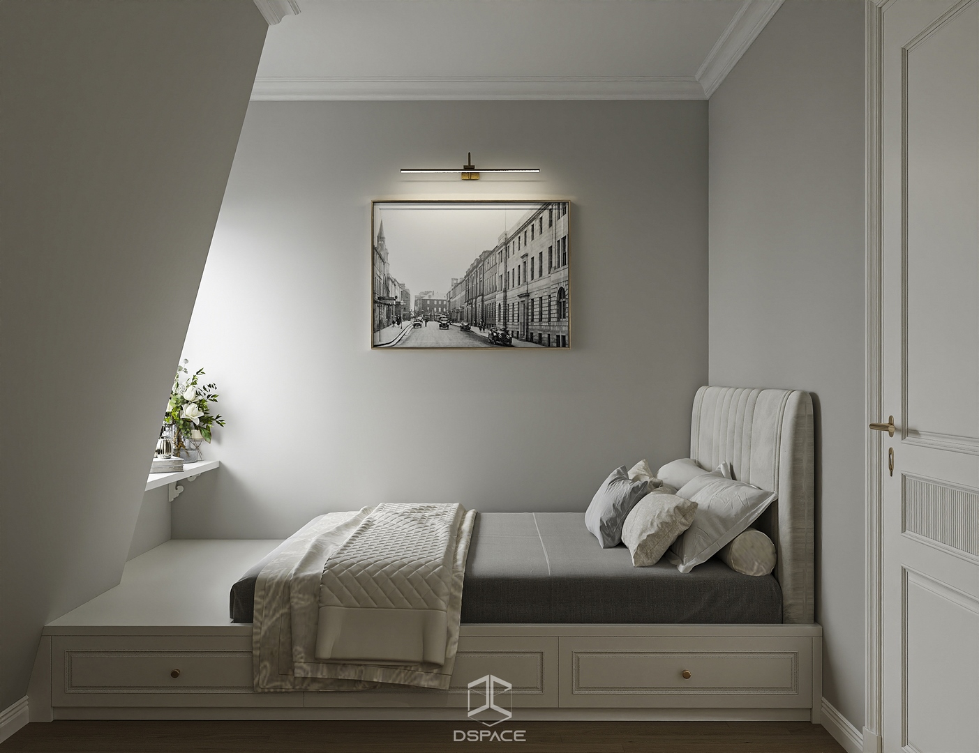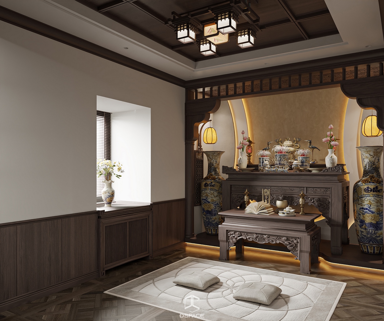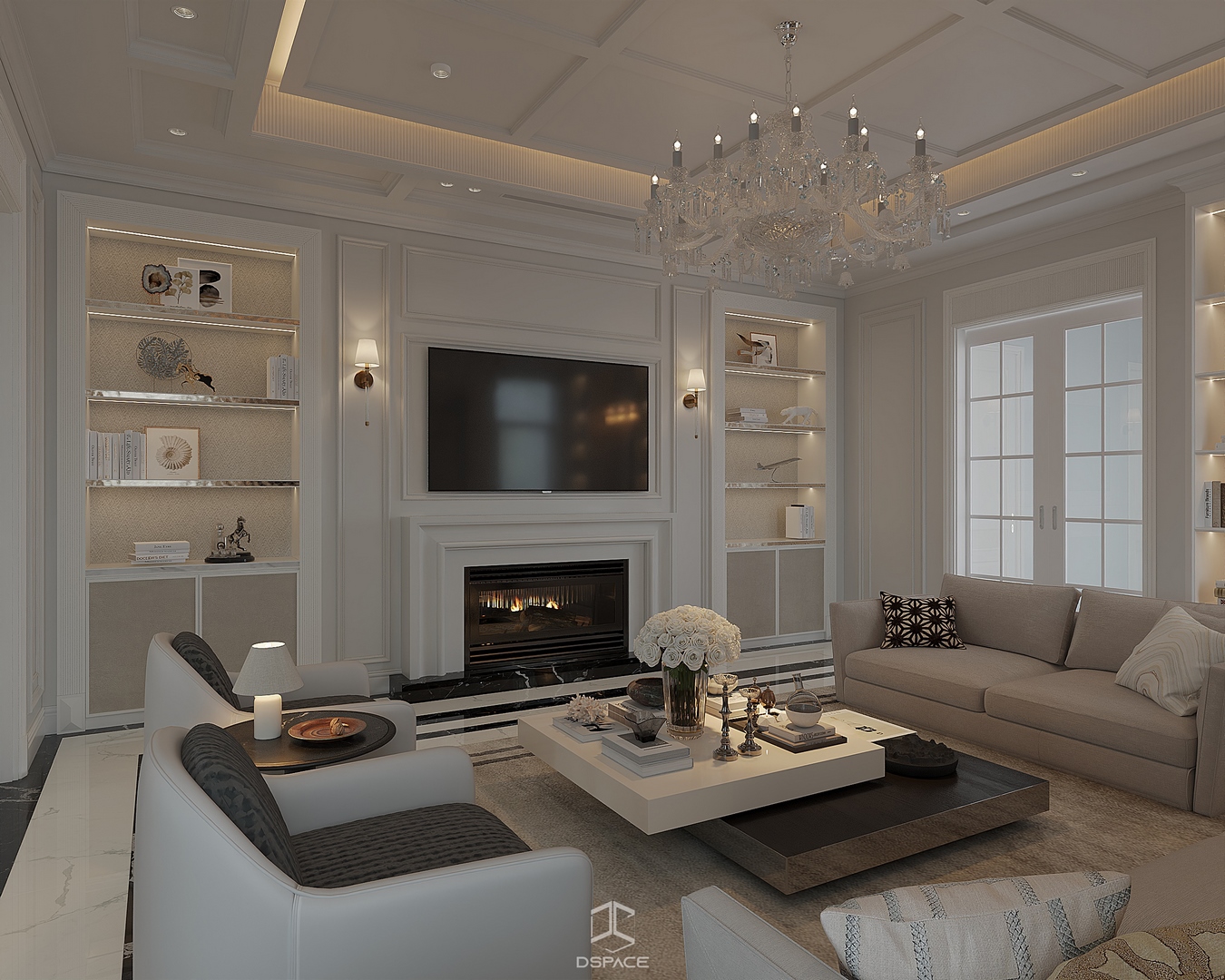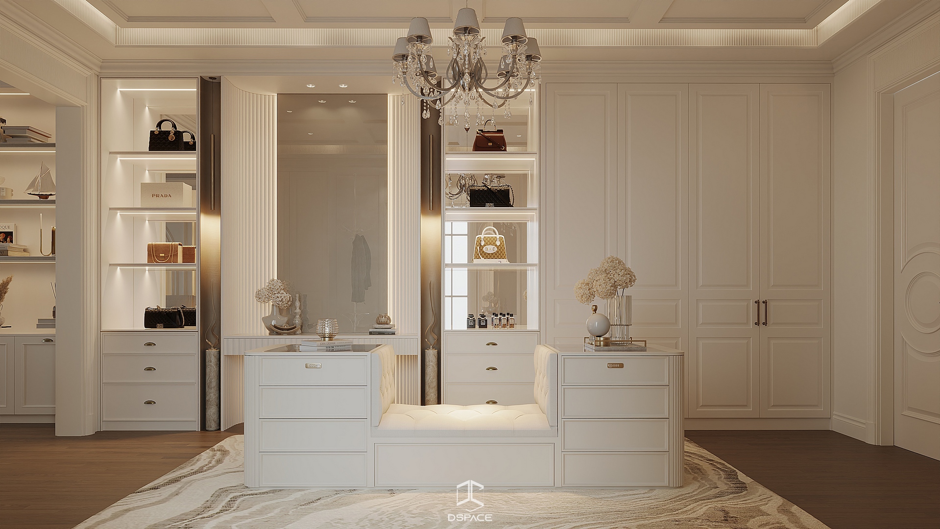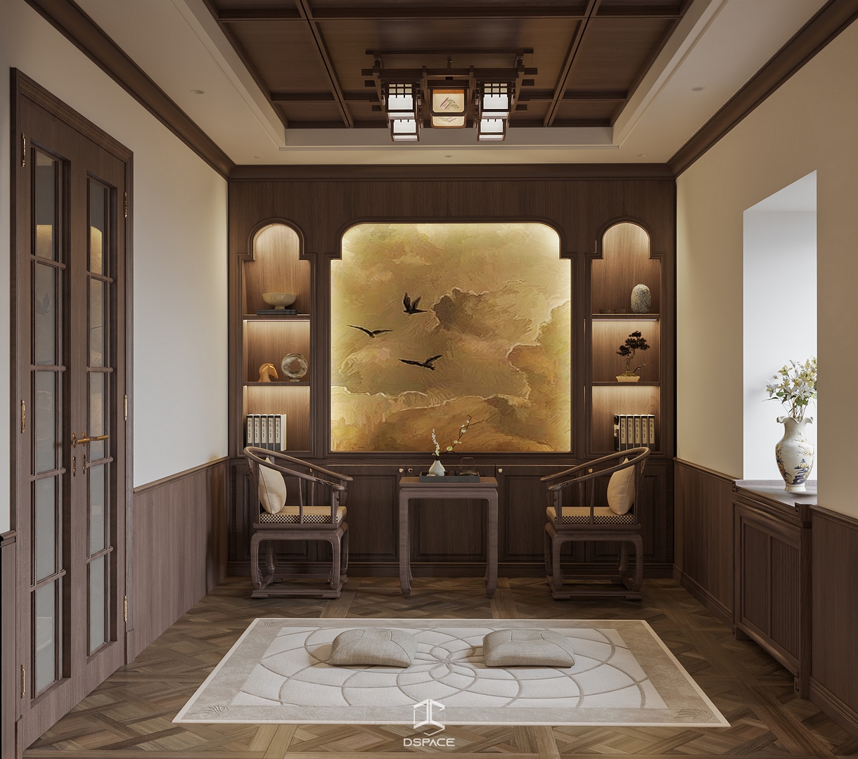 Hệ phào chỉ được xử lý tỉ mỉ, kết hợp cùng bố cục cân đối và ánh sáng tinh tế, tạo nên một tổng thể sang trọng nhưng không nặng nề.